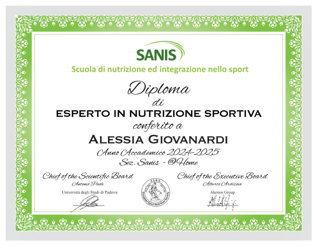 Ho deciso di diventare Biologa Nutrizionista perché volevo capire, e oggi voglio aiutare. Anche nello sport non pensavo di poter essere costante, e invece sono riuscita a trovare un mio equilibrio. Approfondendo la nutrizione sportiva, ho acquisito competenze che mi permettono di supportare sportivi e atleti, amatoriali e non.